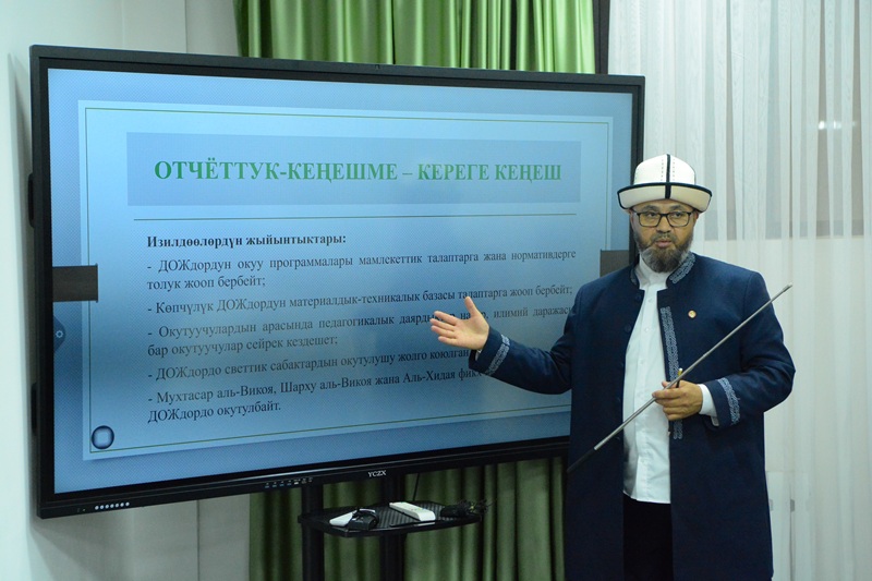 - «Ислам илимдери» багыты үчүн, жогорку кесиптик билим берүү «Бакалавр» жана орто кесиптик билим берүү «Колледж» боюнча жаңы иштелип чыккан Билим берүү стандарттарын бекитүүгө сунуштоо.