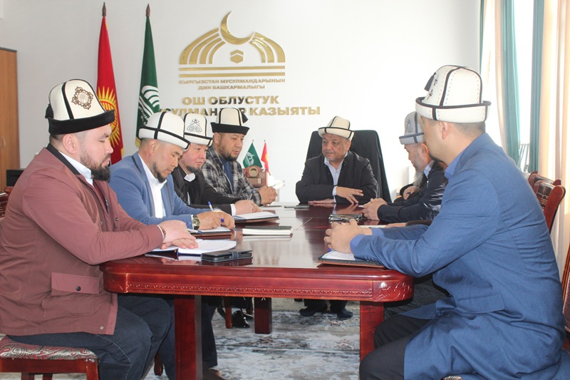 Ушундай эле жыйын Ош шаарындагы «Имам ал Бухарий-Алай» атындагы борбордук мечитте да уланып, QR-код, «Финик» тиркемеси, мечиттердин инвентаризациясы, фитр-садаканы өз убагында тапшыруу жана көзөмөл камералары боюнча тапшырмалар берилди.