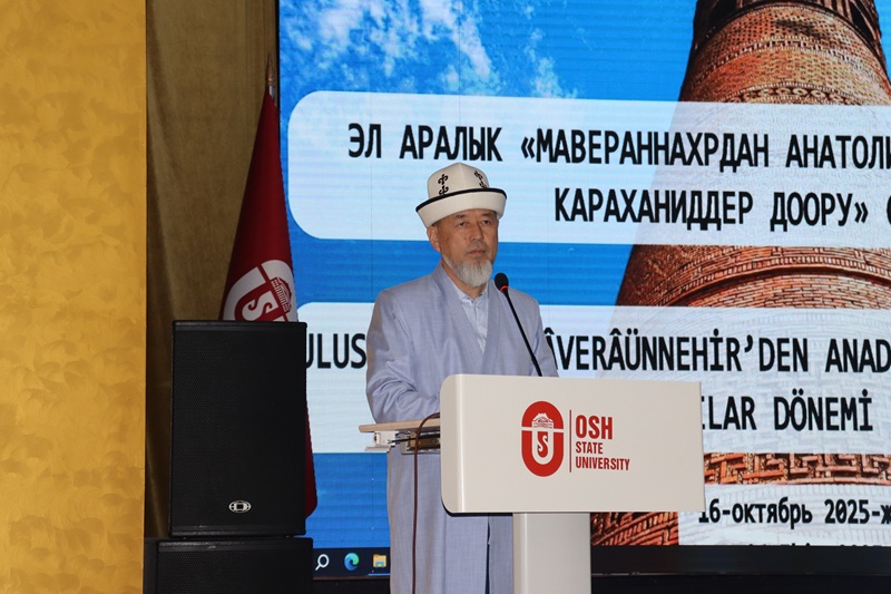 Бүгүн, 16-октябрь күнү Ош шаарындагы Ош мамлекеттик университетинин башкы корпусунун жыйындар залында эл аралык "Мавераннахрдан Анатолияга ислам аалымдары: Караханиддер доору" симпозиуму өткөрүлдү. Илимий саамалыкка Ош шаарынын казысы Самидин кары Атабаев, Ош облусунун мусулмандарынын казысы Султанали ажы Гапуров, Дин иштери жана этностор аралык мамилелер боюнча улуттук агенттигинин түштүк аймактык бөлүмүнүн башчысы Фурхатбек Адилбек уулу, Ош мамлекеттик университетинин жетекчилиги, Түркиядан келген илимпоздор тобу, Ош облус менен Ош шаарынын имамдары жана теология факультетинин мугалимдери менен студенттери катышты.