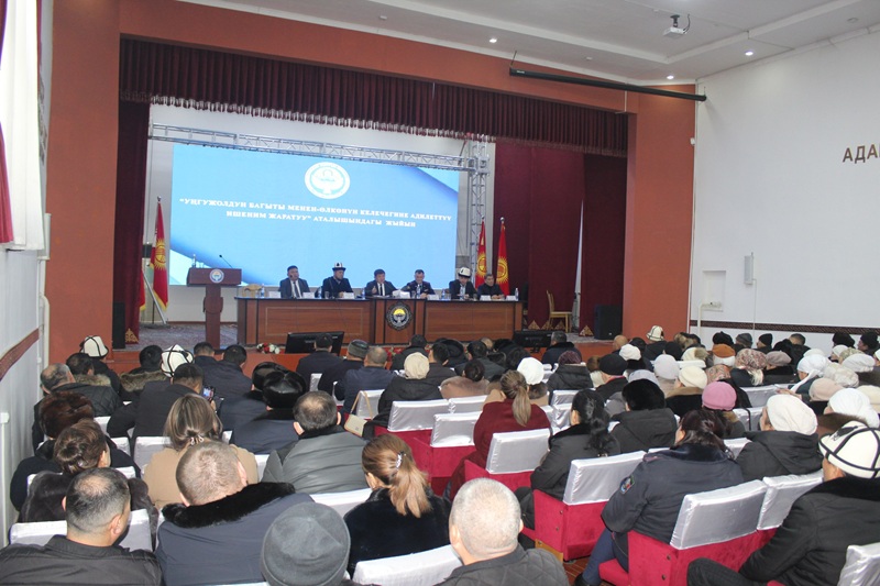 Ош облусуна караштуу Кара-Суу районунун администрациясынын жыйындар залында "Уңгу жол багыты менен өлкөнүн келечегине адилеттүү ишеним жаратуу" аталышындагы жыйын өткөрүлүп, анда КМДБнын Ош облусу боюнча өкүлү Султанали ажы Гапуров баяндама жасады.