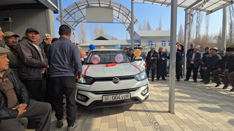 "Үч-Бай мечитинде 20 жыл эмгектенген Бакытбек Абдыбеков дамлабыздын эмгегин эл баалап, айыл жаштары уюшуп "Tivoli" үлгүсүндөгү унааны белек кылышты. Аллахым демөөрчү жаштарыбыздан ыраазы болсун», – деди баш имам-хатиб Бекназар ажы Жапаров.