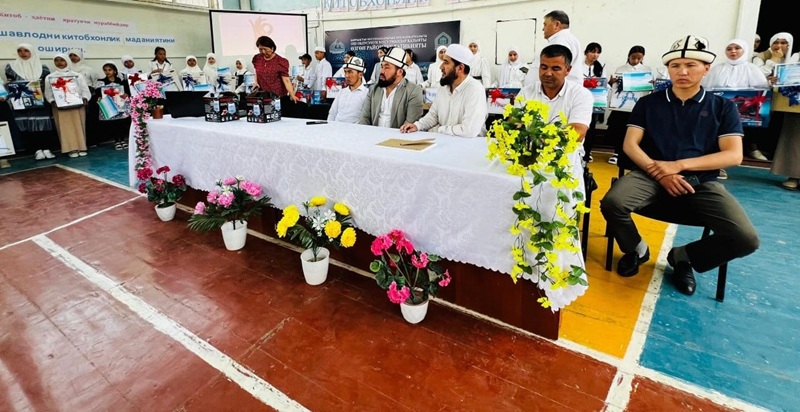 Райондун баш имам-хатиби Үсөн Маматтурсун уулу жалпы жеңүүчүлөрдү куттуктап, алгачкы буйругу «Оку!» менен башталган динибизде китеп жогорку мааниге ээ экендигин айтып, бардык чоң ийгиликке жеткендер көп китеп окугандар экендигин баса белгилеп, жаш окуучуларды китеп окууга чакырып, китеп зээндин азыгы экендигин айтты.