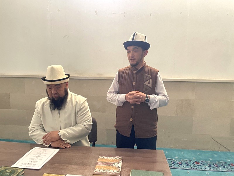 Кечээ, 14-апрель күнү Кыргызстан мусулмандарынын Дин башкармалыгынын даават, үгүт-насаат, жаштар жана аялдар менен иштөө бөлүмүнүн башчысы Эрик ажы Молдокулов жана Азирети Муфтийдин Бишкек шаарындагы өкүлү Бакыт ажы Кайкиев мурда «Йакын-Инкар» көз карашын карманып, кийин андан баш тарткан жамаатка сабак өттү.